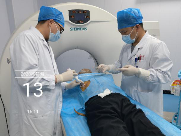 11月13日,在医学影像科CT诊断室团队的协助下,我院胸外科团队成功开展了首例CT引导下经皮穿刺肺活检术,为患者下一步的治疗提供了有力的依据。